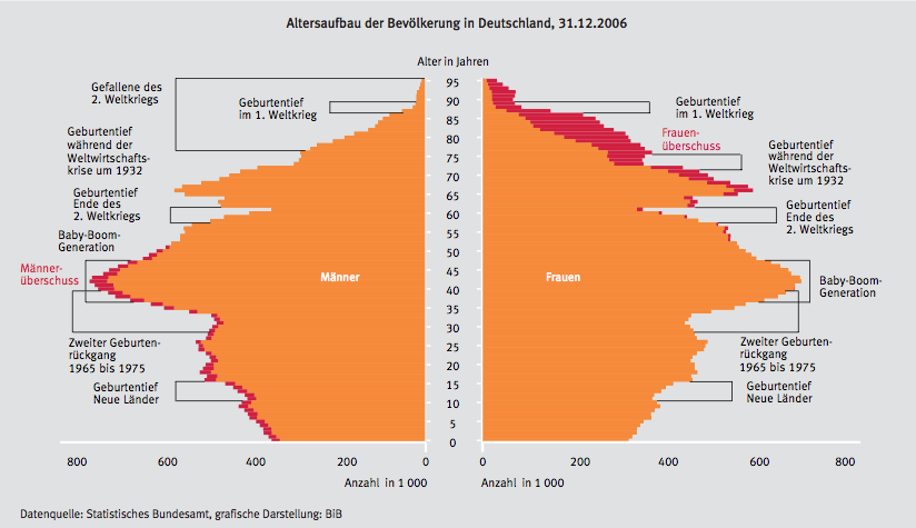 mit "Demografie" meinte ich nicht die Wissenschaft von der Bevölkerungsentwicklung, sondern die Bevölkerungsentwicklung selbst, die sich in Deutschland in den letzten Jahrzehnten doch stark von der in dem Zitat genannten Bedingung für Brenzligkeit unterscheidet:
